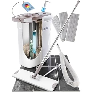 FusselZz Wischmopp Set mit Eimer – Innovativer Wischer mit Frischwassertank – 99% weniger Bakterien und Viren, Bodenwischer mit Auswringfunktion für jeden Boden, 360° drehbar [Verlängerbar bis 167 cm]