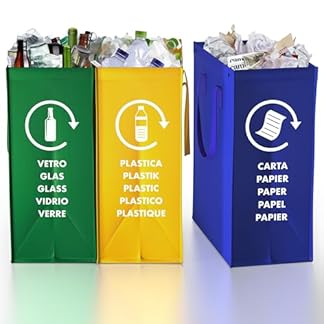 €6,99Produkt kaufenTP HOME® Mülltrennsystem 3fach – Taschen Mülleimer 3 Fächer für Innen und Außen zum trennen von Papier, Plastik und Glas – Pfandflaschen Sammelbehälter – Recycling System