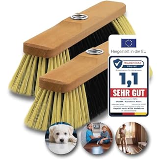 2 x Besenkopf aus Buchenholz – inkl. Metall-Schraubgewinde – robuster Zimmerbesen für innen – Stubenbesen aus Holz – ca. 30 cm breit – universell passend