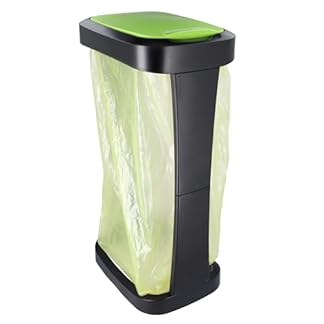 HRB Gelber Sack Ständer mit Schwingdeckel, stabiler Mülleimer Küche für Müllbeutel 70-120L, ideal als Pfandflaschen Sammelbehälter, hochwertiger Müllsackständer für Haushalt und Gewerbe