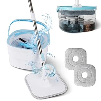 PTSUPLES Wischmopp Set mit Eimer – 360° Spin Mop für Holz-, Fliesen- und Marmorfußböden, Bodenwischer-Set mit Zwei austauschbaren Mikrofaser-Wischbezügen