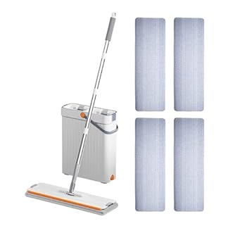 Rdxanc Wischmopp und Eimer mit Auswringer-Set, freihändig, flacher Bodenwischer und Eimer, mit 2/4 waschbarem Mikrofaser-Pad, Nass- und Trockengebrauch