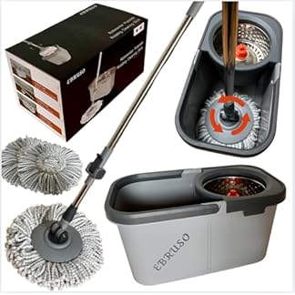 €38,70Produkt kaufenEBRUSO Putzeimer Set – Putzset mit höhenverstellbarem, rotierendem Edelstahl-Stiel (bis 149 cm), 30L Putzeimer & 2 Putzlappen (Ø 30 cm Mop) – Wischmopp Set für Laminat, Fliesen & Parkett (Grau)