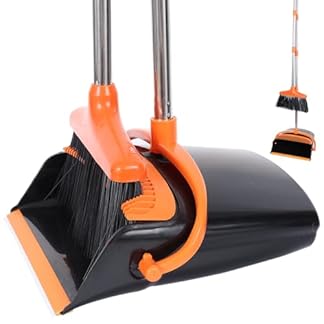 Besen und Kehrschaufel Set mit 137cm Langem Ausziehbarem Griff für Haus, Büro, Küche (Orange)