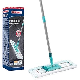 Leifheit rückenschonender Bodenwischer Profi XL Micro Duo, Stahlstiel 146cm, Wischmopp mit Fußklick, Mikrofaser Bezug für Fliesen und Laminat, 360° Drehgelenk, Click-System, umweltfreundlicher Karton
