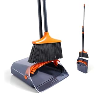 CLEANHOME Besen und Kehrschaufel Set mit langem Stiel, Vier Lagen dichter Borsten, Kehrschaufel verstaubar – mit Kammzinken, geeignet zum Reinigen von Staub, Müll und Haaren im Innenbereich