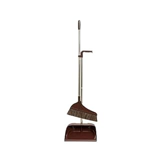 Modernes Set aus Besen und Kehrschaufel aus Edelstahl mit langem Stiel und stehender Kehrschaufel für den praktischen Gebrauch zu Hause