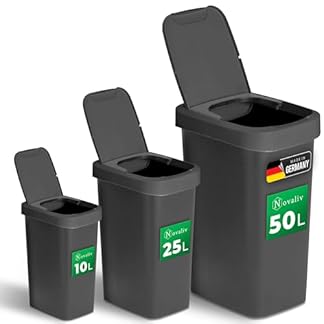 €14,89Produkt kaufenNovaliv Mülleimer-Set 10L + 25L + 50L, Abfalleimer mit 2in1 Deckel, Klappdeckel & Schwingdeckel, Anti-Geruch Mülleimer für Küche Haushalt Büro, Müll Eimer Abfall Kunststoff Abfallbehälter