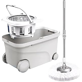 €1231,14Produkt kaufenOUZBEM Spin Mop-Eimer mit Wringer-Set – Bodenwischer mit 4 Rädern, leicht zu bewegen, Verstellbarer Griff aus Edelstahl, 5 Mikrofaser-Ersatzkopf-Nachfüllungen, 1 Bodenbürste, grau Vision