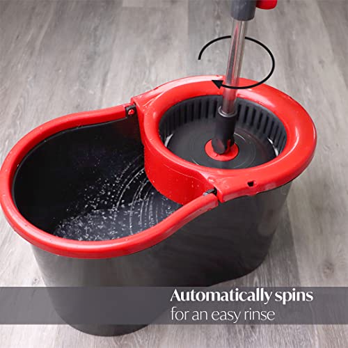 DIVCHI Mikrofaser-Wischmopp und Eimer-Set, Spin Mop zum Reinigen von Böden, Set mit 1 x Mop, 1 x Eimer + 2 Ersatz-Moppköpfe, Rot/Grau