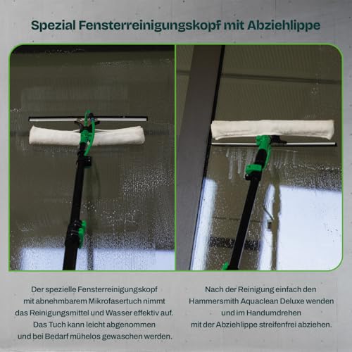 Hammersmith AquaClean Deluxe – Das Original aus dem TV – Besen mit Wasseranschluss – Waschbürste inkl. 7m Teleskopstiel – Wasserbesen – Fenster & Photovoltaik Reiniger
