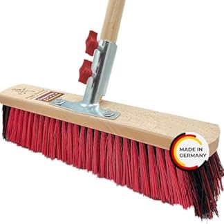Produktdetails| „Made in Germany“ Straßenbesen Durch einer Breite von 40cm u. 1,50m langem Ø2,8cm Holzstiel. Durch robuster Supermix Borstenmischung sowie dem patentierten Stielhaltesystem „Schraubfix Plus“.