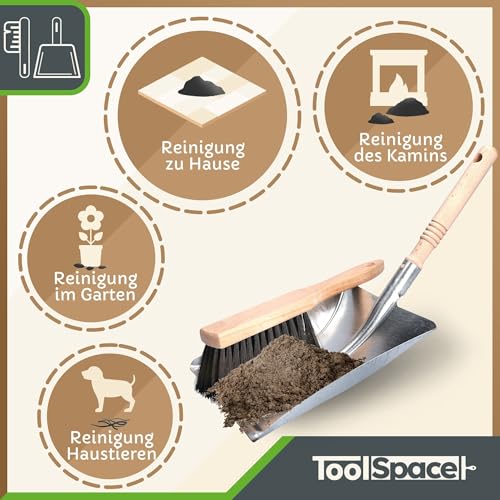 ToolSpace Kehrschaufel und Handbesen mit Kunstborsten | Edelstahl Kehrblech & Buchenholz Handfeger | Robuste Kehrgarnitur für Garten | Kamin und Kohlenschaufel | 1 x Besen und 1 x kehrschaufel Set