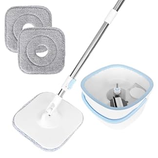Wischmopp Set mit Eimer 130cm, 2-in-1 Filtersystem Trennt Schmutz von Frischwasser, Putzeimer Bodenwischer mit Auswringfunktion, mit 2 Mikrofaserbezug, für Fenster- Bodenreinigung